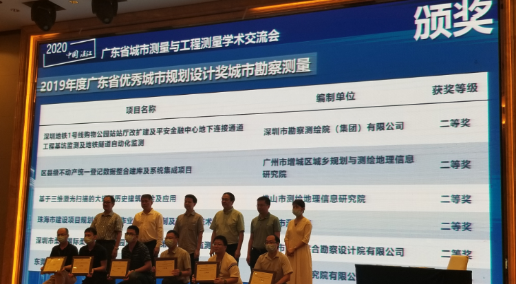 随后,在2019年度优秀城市规划设计奖颁奖典礼上,我司参与评选的《深圳市柔宇国际柔性显示产业园深基坑支护第三方变形监测》项目获2019年度广东省优秀城市规划设计奖二等奖,由张帅主任工程师上台代表领奖。