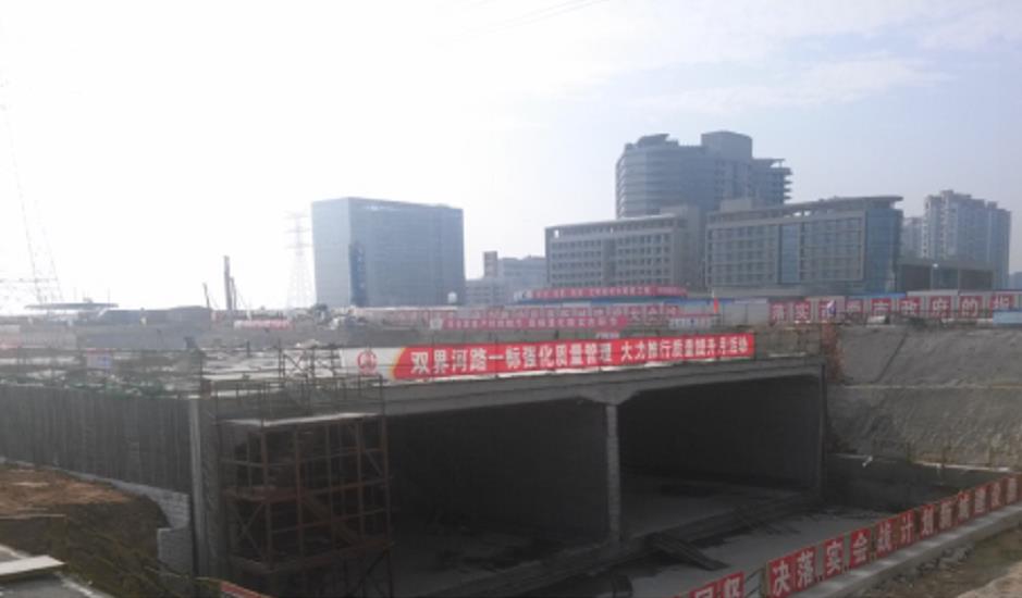本项目道路全长约3.0km,规划为双向4~8车道,埋深最深达25m,为国内少有的长距离、大跨度地下深埋城市主干道。线路位于滨海地区,经多次人工改造,存在大量填土(石)、深厚软弱淤泥、强透水砂层等不良地质,工程条件异常复杂。道路基坑设计采用悬臂桩、双排桩、桩锚、桩撑、沉井以及放坡等多种支护方案,道路底面采用预应力管桩、旋喷桩、素砼桩、注浆钢管桩以及换填碾压等地基处理方式。上跨1、5、11号地铁线的双界河路段采用抗拔桩、抗隆起板、注浆预加固以及分块沉井开挖等专项保护措施。设计方案科学严谨,在基坑稳定性、地基承载力、地铁变形控制等方面均满足了工程要求,取得了良好的工程效果。